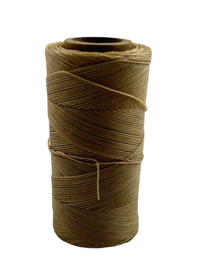 Este hilo de 3 capas de primera calidad está muy encerado para facilitar su uso. Está fabricado con un material sintético muy resistente que no se estira, ni siquiera en los calurosos meses de verano. Está fabricado en el popular calibre 18. Contiene aproximadamente 720 pies. El carrete mide 2" de diámetro x 4-1/8" de alto.