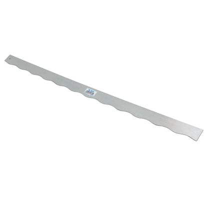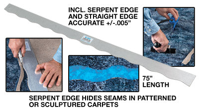 This 75 inch steel straight edge for carpet installation includes both a serpent edge on one side and a straight edge on the other, providing the benefits of two tools in one. The serpent edge side of the tool is used on “sculptured” type patterned carpet to produce less visible seams. The straight edge side is precision ground +/- .005″ for straightness. This provides the accuracy needed to prepare seam edges when it is necessary to cut them from the carpet’s backing.