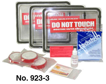 These calcium chloride moisture test kits are used to obtain a quantitative value that indicates the rate of moisture vapor emission from a concrete slab to determine if the slab is acceptable to receive the finished floor covering. Also, included are pH test papers and distilled water used to measure the surface alkalinity of the concrete slab to determine if it meets the recommendations of the flooring or adhesive manufacturer. Inexpensive and easy to use, these kits are widely recommended by floor covering product manufacturers and conform to the American Society for Testing and Materials (ASTM International) Standard ASTM F 1869-04 for testing of moisture. Detailed instructions, results sheet and a tack cloth used to remove dust prior to installing the clear dome dish cover are included with each kit.