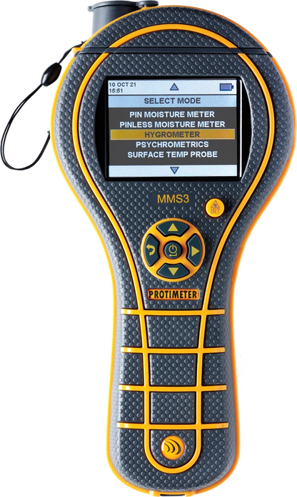 The Protimeter MMS3 is a professional, all-in-one moisture measurement system engineered for fast, accurate diagnostics in building, restoration, inspection, and flooring applications. This advanced moisture meter combines four essential measurement modes—pin, non-invasive, hygrometry, and infrared surface temperature—into a single ergonomic unit that simplifies moisture assessment for contractors and inspectors.
